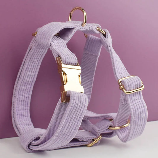 Collar y Correa de Pana Rosa y Púrpura con Placa de Identificación Personalizada para Perros - Elegancia y Seguridad para tu Mascota