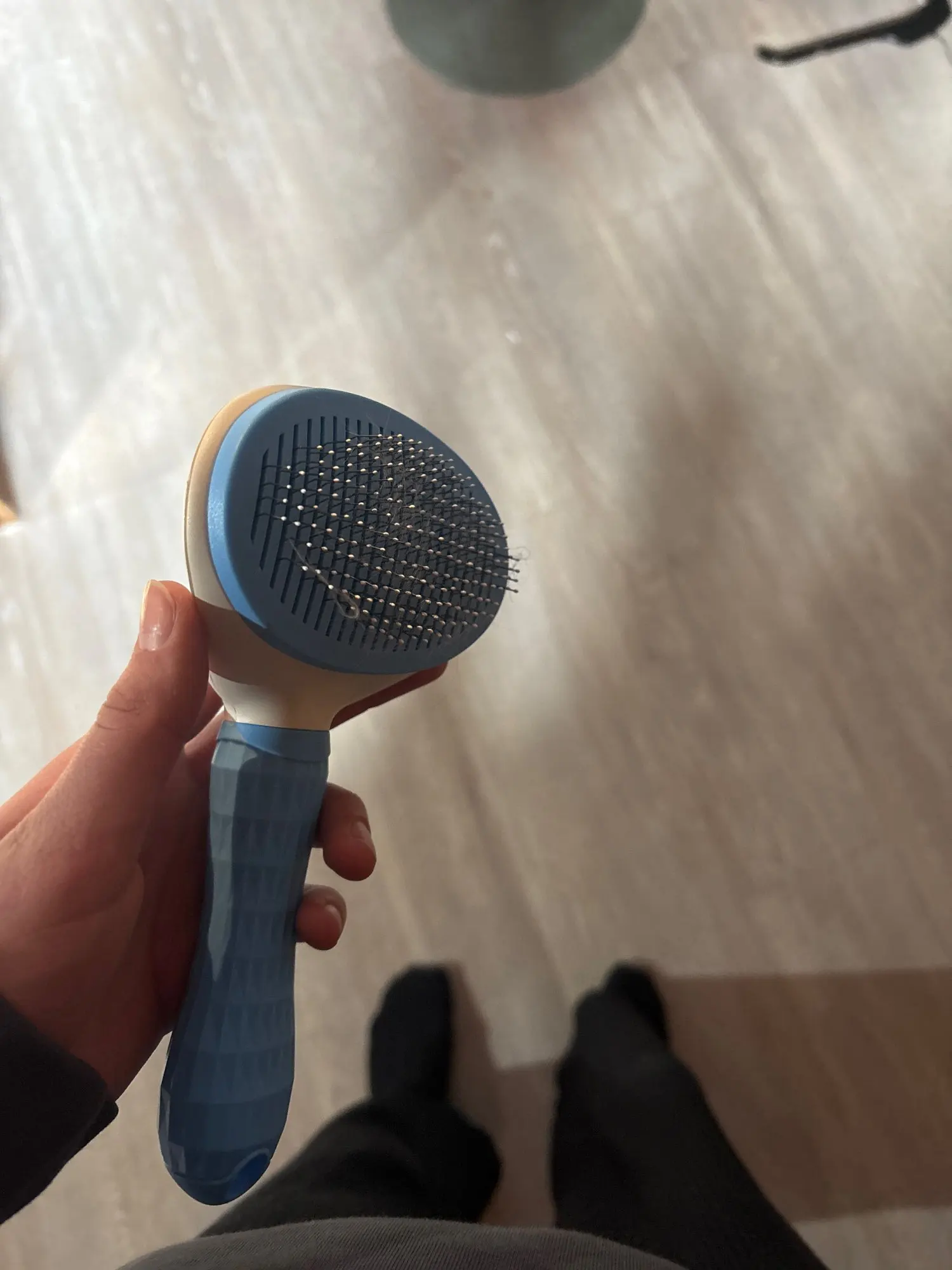 Nuestro cepillo está diseñado con cerdas finas de acero inoxidable que penetran en el pelaje y eliminan el pelo muerto sin dañar la piel de tu mascota. Con un solo movimiento, recoge el pelo suelto y evita que termine en tu sofá o ropa.