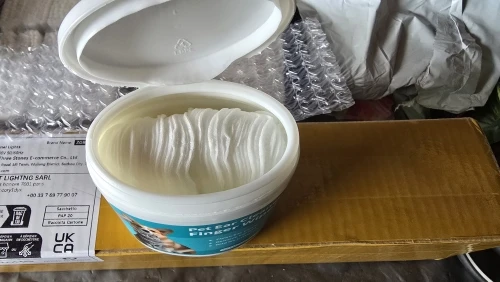 Cada toallita mide aproximadamente 6 cm de diámetro, lo que permite una limpieza precisa sin riesgo de dañar el oído.